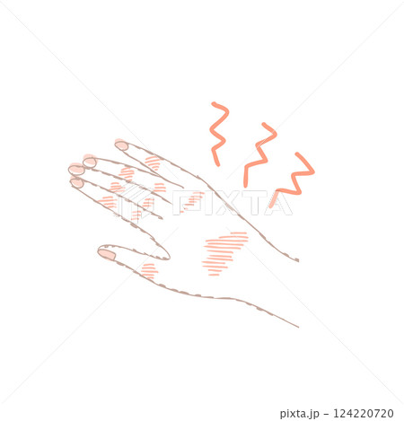 手荒れ(手の甲)のイラスト。あかぎれ、しもやけ、手湿疹。