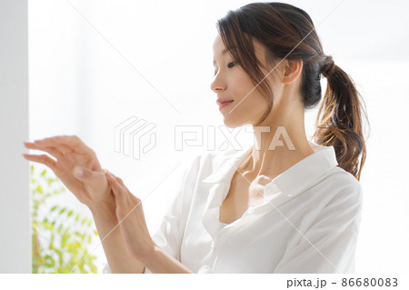 ハンドケアする女性