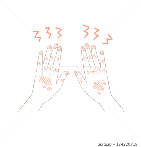 手荒れのイラスト。あかぎれ、しもやけ、手湿疹。