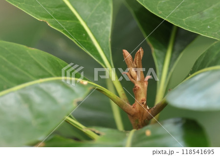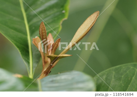 自然 植物 アカテツ、若い葉や小枝には赤褐色の細かい毛が密生