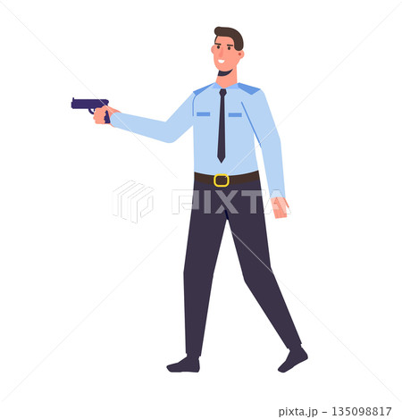 The police officer with gun. Vector illustration in flat cartoon style