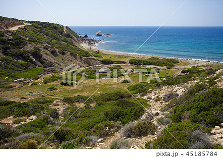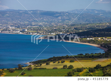 Aerial view of Aphrodite bay, Akamas Peninsula National Park, Cyprus