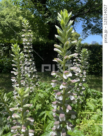アカンサスの花が咲いています。学名はAcanthus mollisです。