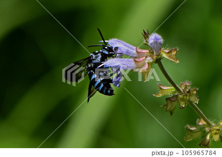 生き物 昆虫 トラマルハナバチ、花の奥まで届くとても長い舌(中舌)を持っています