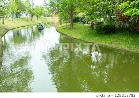 岐阜県海津市 新緑が美しい春のアクアワールド水郷パークセンターの水路