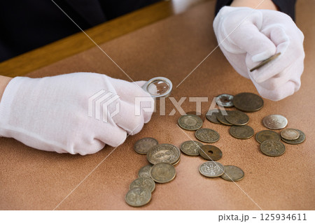 古銭を鑑定する女性 鑑定士