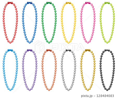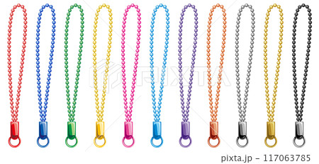 カラフルでシンプルなボールチェーンのジョイント金具付きベクターアイコンイラストセット