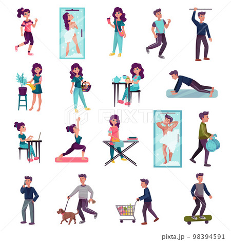 Man and Woman Daily Routine and Day Order Big Vector Set