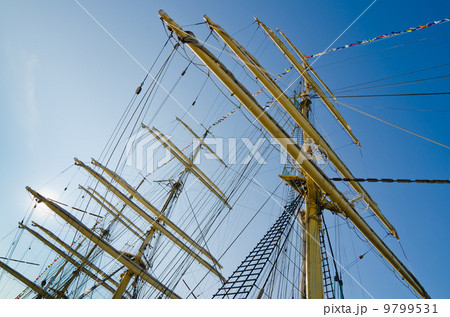 Mast with sails of an old sailing vessel