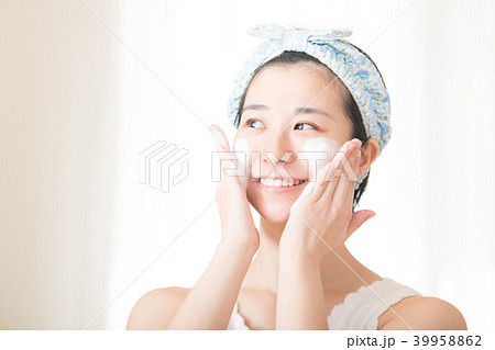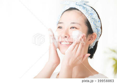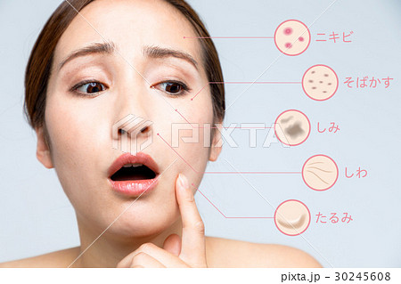 ビューティーイメージ 若い女性 美肌 素肌 きれいな肌 スキンケア 白バック ニキビが気になる女性