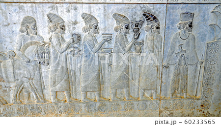 ペルセポリス遺跡のバスレリーフ(イラン、シーラーズ北)