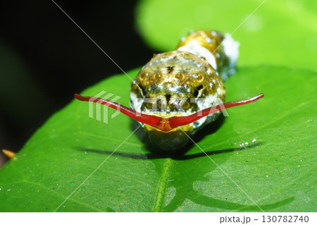 ナミアゲハ(アゲハ)の幼虫(5齢・臭角を出して威嚇