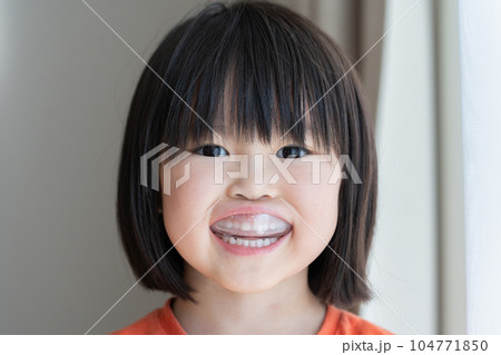 マウスピースで歯列矯正をする子供