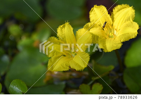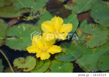 湖沼やため池に生息する水草のガガブタの花【ミツガシワ科アサザ属】