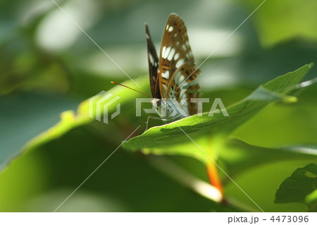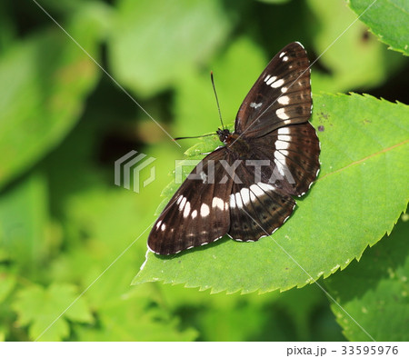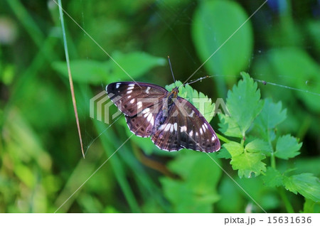 あじさいの葉に羽を休めるアサマイチモンジチョウ