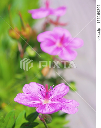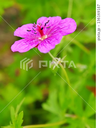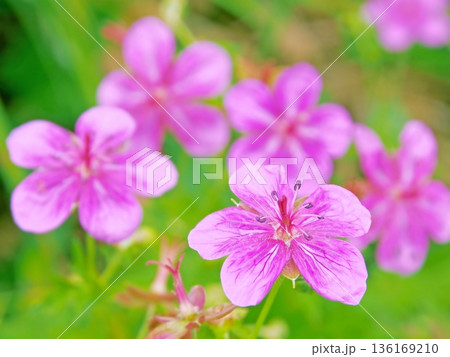 アサマフウロ ピンク色の花 クローズアップ 山野草