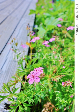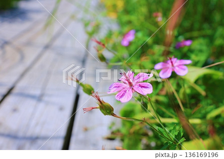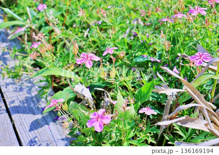 アサマフウロとハクサンフウロが並ぶ写真【八島ヶ原湿原・霧ヶ峰高原】長野県下諏訪町