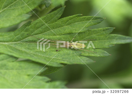 獲物を待つアシナガグモ科オオシロカネグモ