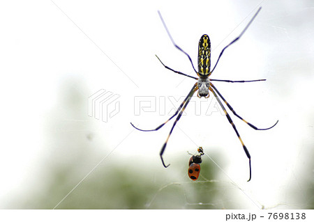 ジョロウグモとクモの巣のてんとう虫