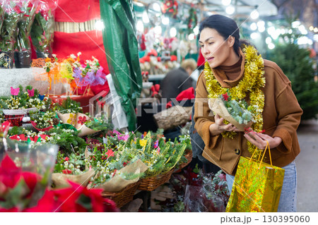 Woman purchasing christmas decorations