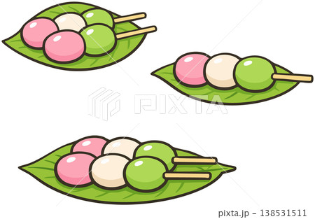 Botchan Dango on Bamboo Leaves Japanese Three Color Sweet Dumplings