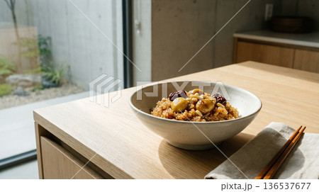 Korean Yakbap Sweet Rice Bowl with Chopsticks Minimal Modern Kitchen Scene