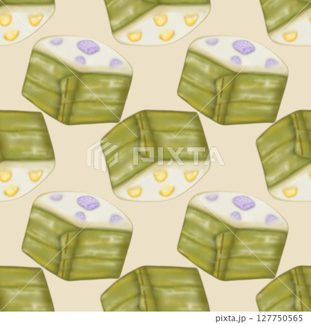 Seamless pattern of Thai Traditional Desserts Cute Collection hand drawn style illustrations on yellow background.
