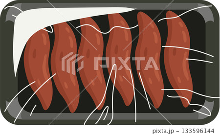 pork slice rolled pork raw meat packaging in food tray with reduced label for grocery and cooking use