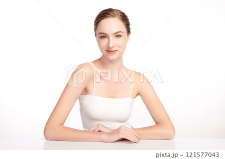 Beautiful young woman with clean fresh skin on white background, Face care, Facial treatment, Cosmetology, beauty and spa, women portrait.