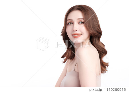 Beautiful young asian woman with clean fresh skin on white background, Face care, Facial treatment, Cosmetology, beauty and spa, Asian women portrait.