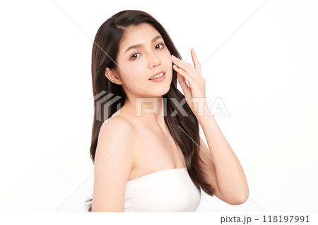 Beautiful young asian woman with clean fresh skin on white background, Face care, Facial treatment, Cosmetology, beauty and spa, Asian women portrait.