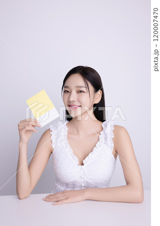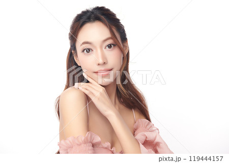 Beautiful young asian woman with clean fresh skin on white background, Face care Facial treatment Cosmetology beauty and spa. on white background
