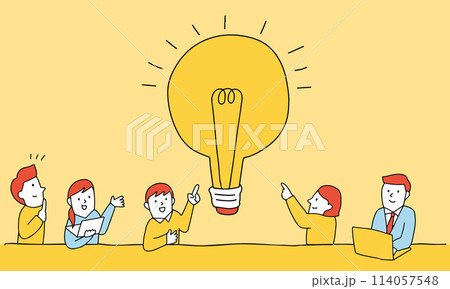 アイデアディスカッション 話し合うビジネスチームのイラスト