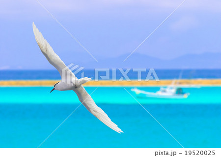 夏に沖縄や奄美の海岸やビーチで見られる白い優雅な美しい野鳥、エリグロアジサシ