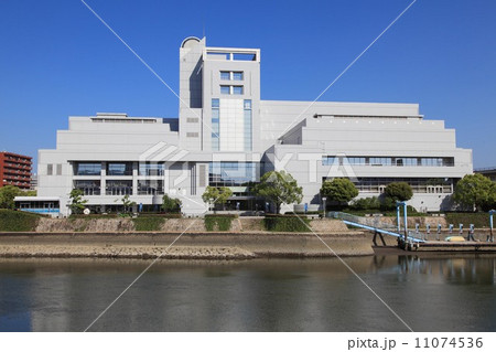 広島市中区アステールプラザの全景風景です。本川沿いに建っています。芸術の館です。広島県