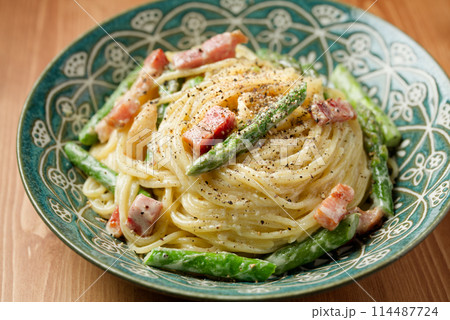 ベーコンとアスパラのパスタ