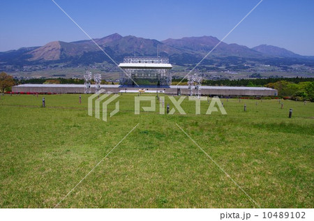 世界最大級の屋外ステージと阿蘇五岳パノラマ風景(南阿蘇)(熊本県野外劇場アスペクタ)