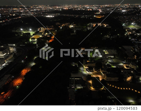 【都内上空から空撮・夜景】教会とキリスト教大学の灯かり