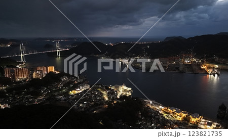 【空から見る長崎・夜景】 女神大橋と三菱長崎造船所 Nagasaki Port