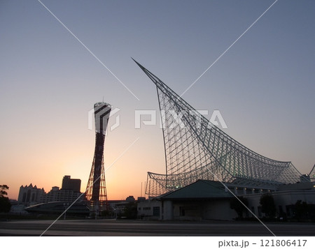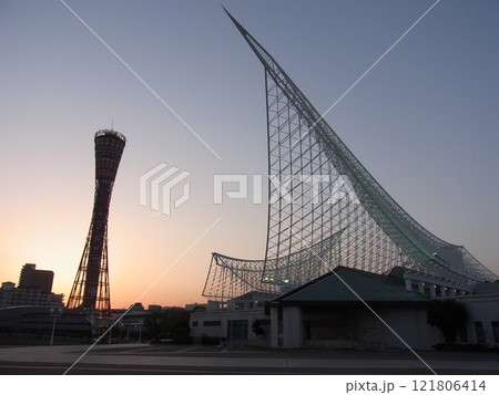 神戸港の夕景 メリケンパークと再開発の新港突堤西地区を望む
