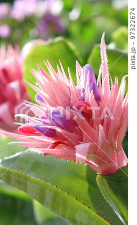ピンクの花 熱帯植物(8月)アナナス11V3.4