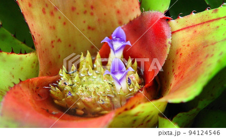 水に濡れた紫の花 熱帯植物(3月)アナナス・パイナップル科10
