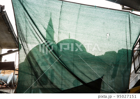 トルコ イズミルのケメラルティマーケットから見えるケスタネパザルモスクのシルエット