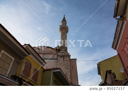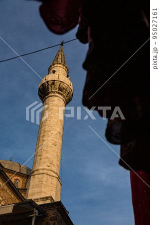 トルコ イズミルのケメラルティマーケットから見えるケメラルトゥモスクのミナレット.