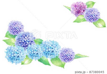 夏の花:アジサイの水彩イラスト。2隅装飾フレーム。