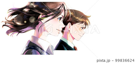 横顔の社会人男女イラスト人物単体、向かい合う、無季、背景なし