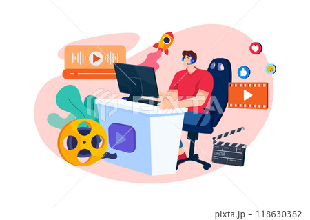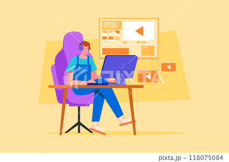 Man Editing Video Illustration concept. A flat illustration isolated on white background