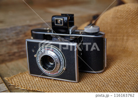 Vintage Kodak Flash Bantam on Rustic Burlap Surface