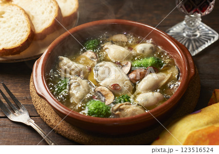 牡蠣とマッシュルームのアヒージョ