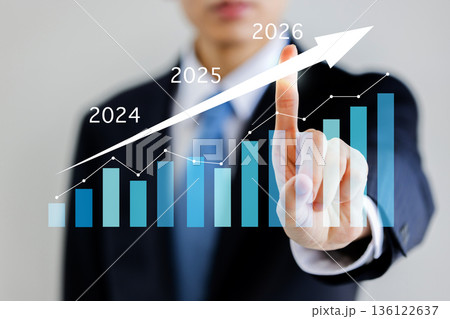 ビジネスマン 経済 棒グラフ 右肩上がり 矢印